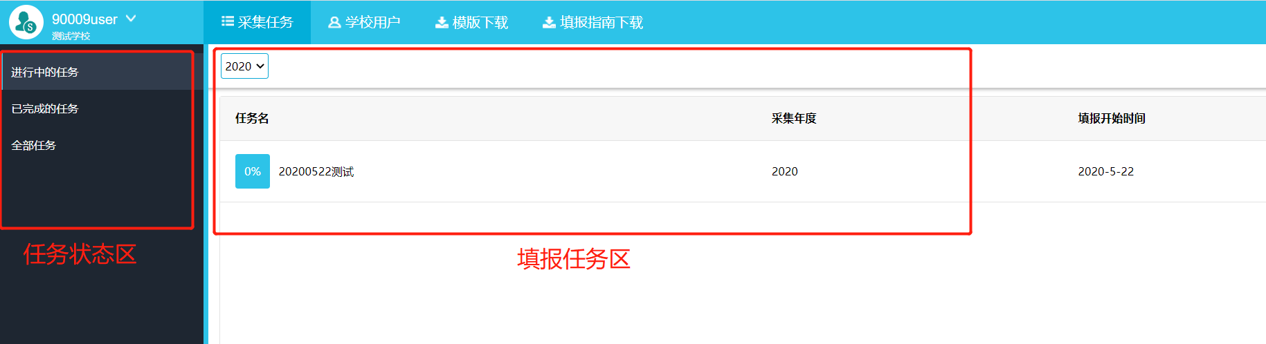 使用校级管理员账号进入系统后,在系统任务区显示待填报任务,单击可展开目录显示该任务待填报表单名(图4-13)。
