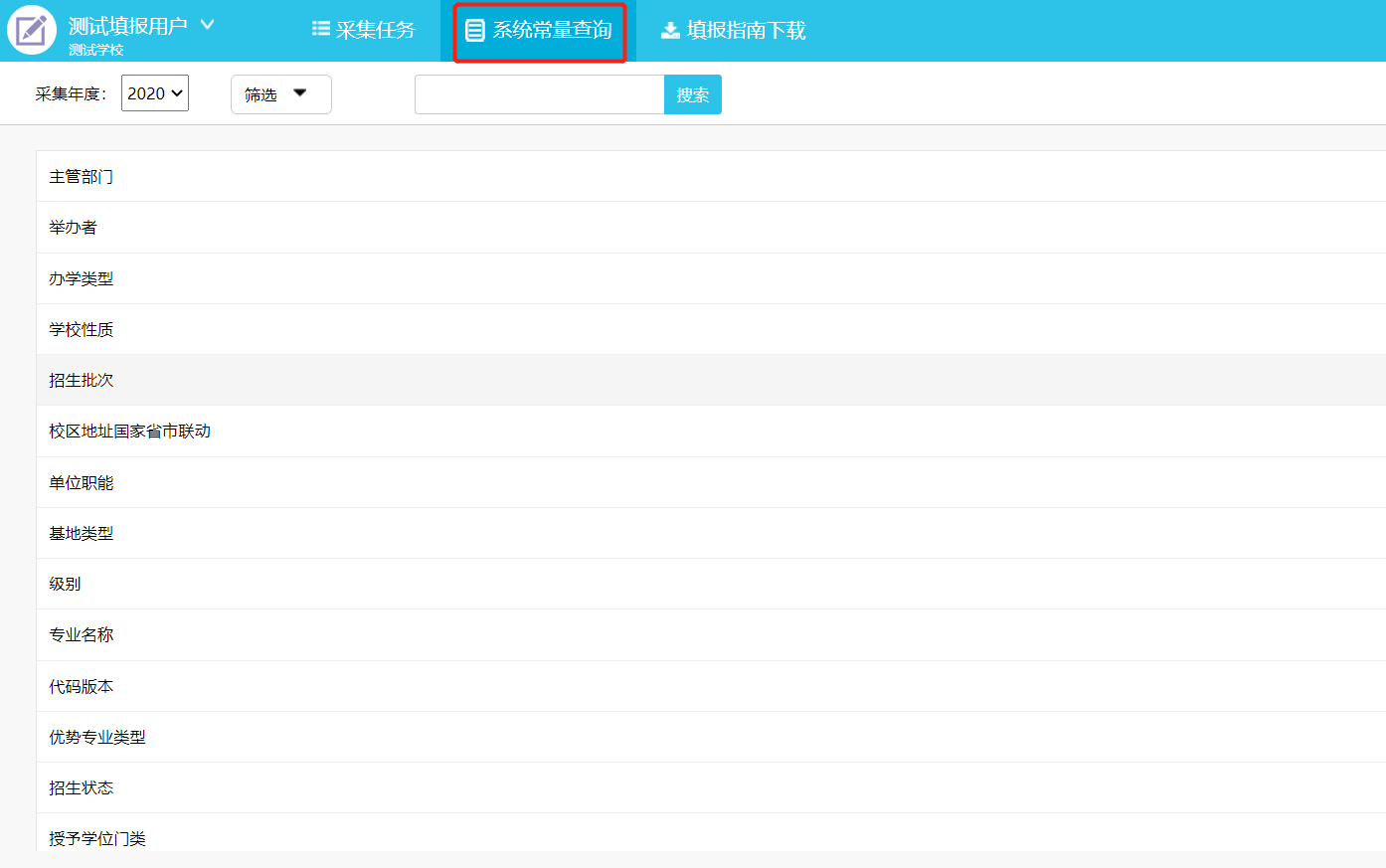 填报用户可以通过点击“系统常量查询”进行相关标准的代码,以及系统默认常量的查询,如图3-13,图3-14所示。