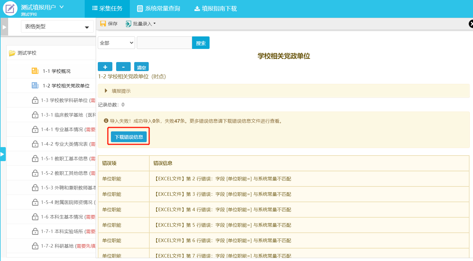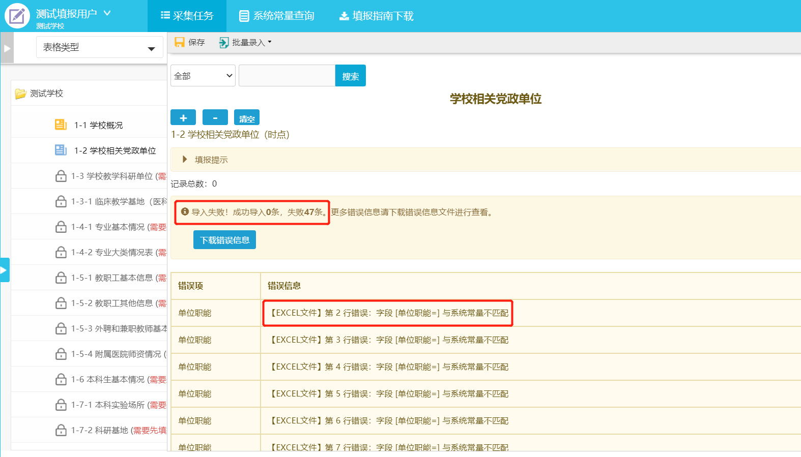 3.非直属附属医院的单位号、党政单位名称不能与1-3重复。