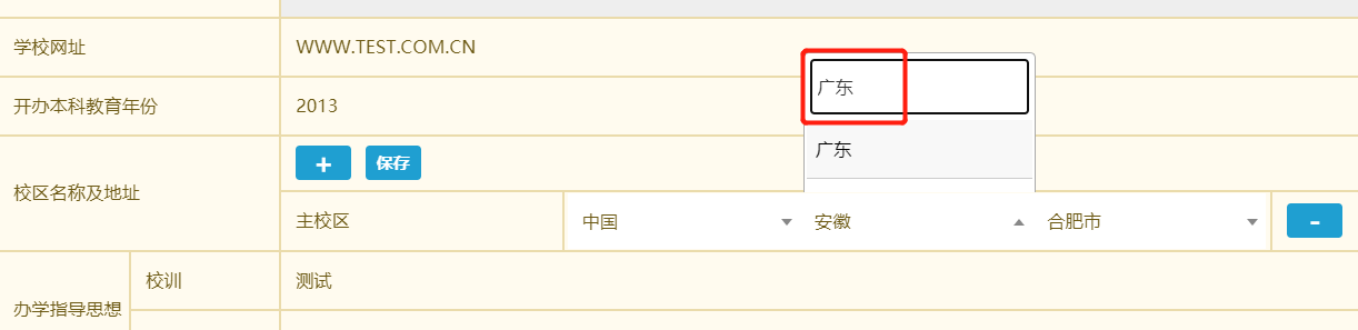 3.“校区名称”不重复;校区地址应和国家地域名称标准完全一致。