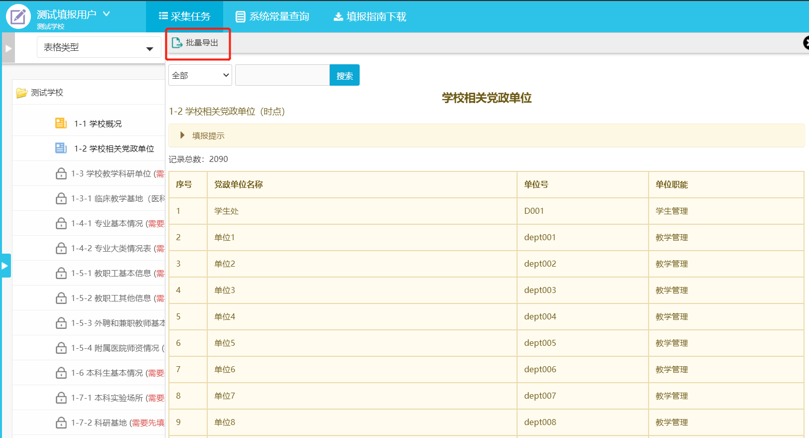 2.“教学科研单位名称”不重复。