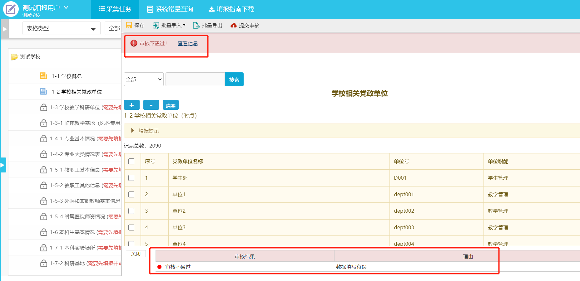4.3 校级管理用户最终审核、上报数据