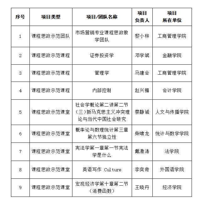 日前,广东省教育厅公布2021年度本科高校课程思政改革示范项目认定名单。在限额申报9个项目基础上,我校9个项目获批为2021年度课程思政改革示范项目。其中,1个团队获批为省级课程思政示范团队,3门课程获批为省级课程思政示范课程,5个课堂获批为省级课程思政示范课堂。
