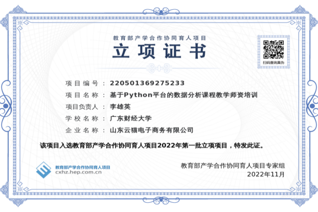 图2: 2022年教育部产学合作协同育人项目立项证书