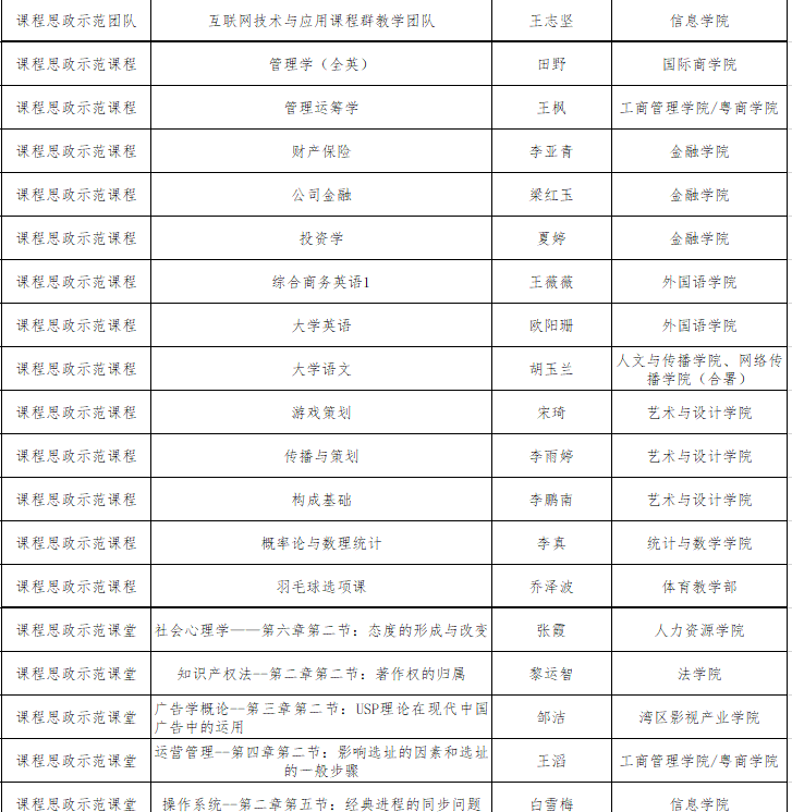 立项建设校级课程思政示范团队1支,示范课程13门,示范课堂16个。组织申报省级课程思政示范改革项目,共推荐了10个项目参与省级评选,包括示范团队2支,示范课程3门,示范课堂3个,课程思政大家谈典型案例2个。构建起涵盖学院、专业、课程、课堂四个层面的示范体系。