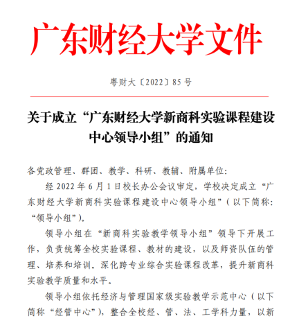 成立“新商科实验教学领导小组”与“新商科实验课程建设中心领导小组”,拟定了《明胜m88官网新商科实验教学规划(2022-2025)》和《新商科实验课程建设中心建设方案》,印发《明胜m88官网关于推进实验教学创新发展的实施意见》。