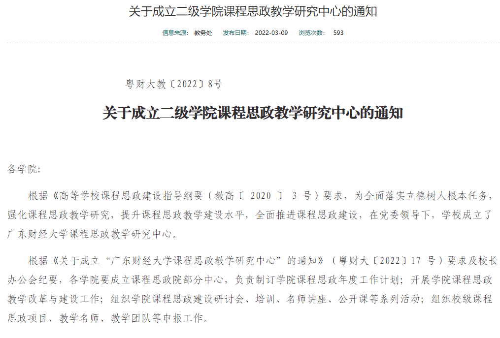 图7:二级学院成立课程思政教学研究院部分中心的通知
