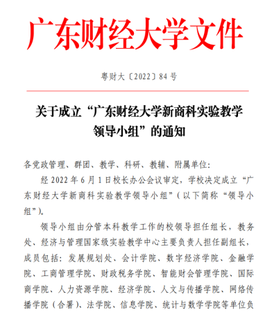 图10:获批广东省本科高校新文科建设委员会主任单位通知