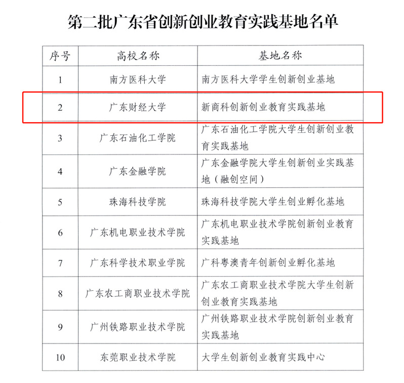 近日,广东省教育厅公布第二批广东省创新创业教育实践基地入选结果,我校“新商科创新创业教育实践教育基地”成功获批为广东省创新创业教育实践基地。本次广东省有51所高校参评,共有10所高校入选。
