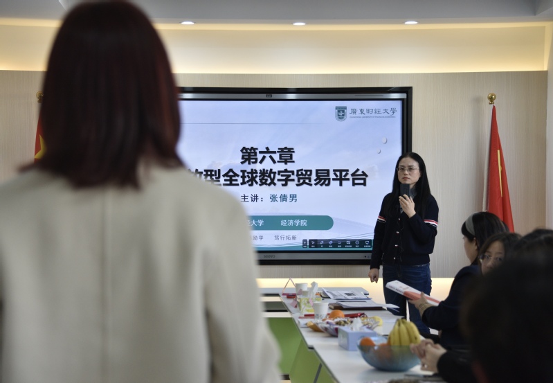 观摩沙龙上,经济学院教师张倩男和施颖进行说课和讲课展示。张倩男对专业课《数字贸易》第一节进行说课和讲课展示,结合开放型全球数字贸易平台的产生与发展,解读了我国在加快建设贸易强国方面的政策和数字化发展的前沿趋势。张倩男老师希望解决以下课程思政的痛点:如何把握思政融入的“度”及如何自然流畅不着痕迹地融入。