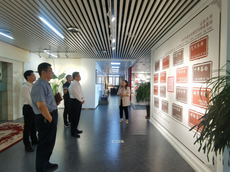 2024年9月25日上午,调研组一行前往山东大学调研。山东大学副校长朱德建致欢迎辞,本科生院和信息化工作办公室介绍了学校在新文科建设和数字化治理体系方面的一些改革实践。随后,我校调研人员深入与参会人员进行了沟通交流。会后调研组参观了中华传统文化研究与体验基地,实地感受了山东大学在新文科建设中所取得的实践创新成果。